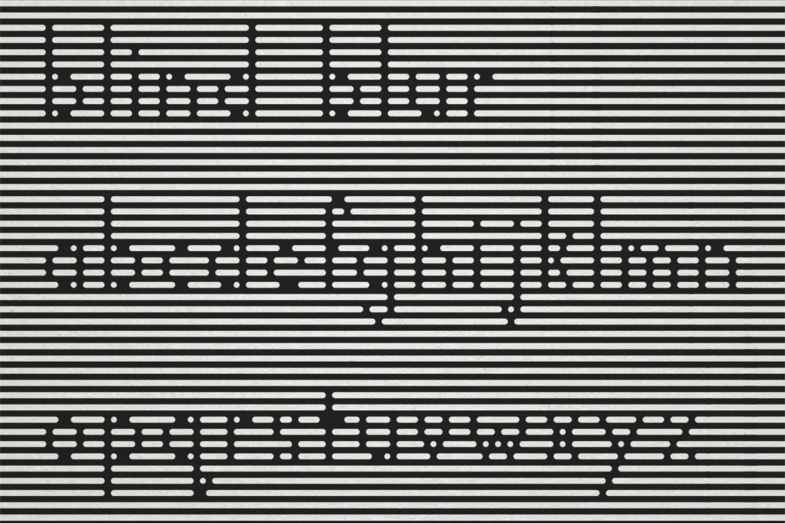 The horzontal line construction also makes the font good for laser cutting or stencil applications, allowing it to be produced as a single, cohesive object without the need for additional structural supports. This makes it both a functional and visually compelling choice for display-oriented design projects.