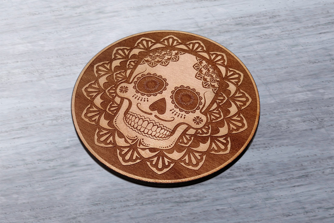 These coasters were designed and laser cut by me for personal use with a dual purpose: not only do they serve as drink coasters, but they also double as a casual party game. Inspired by the bluffing game Skull & Roses, the set includes four groups of four coasters, with each group made up of three flower coasters and one skull.